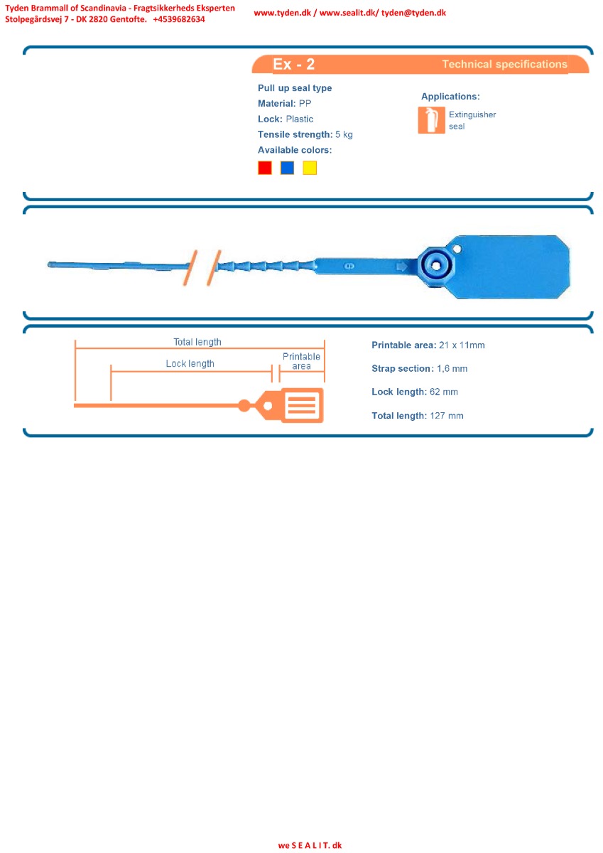 - Bruges til plombering af sikringssplit på Håndildslukker, eller plombering af førstehjælpsudstyr.